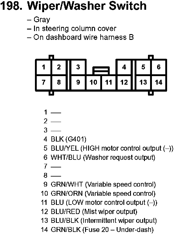 198. Wiper/Washer Switch: