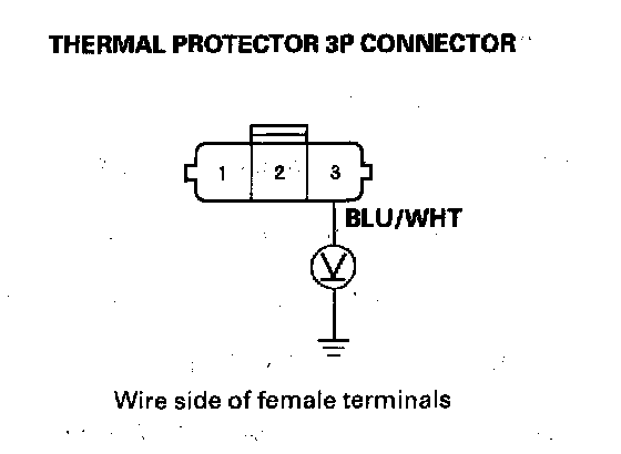 3. Measure the voltage between the No.3 terminal of the thermal protector 3P connector and body ground.