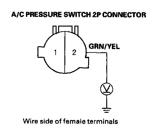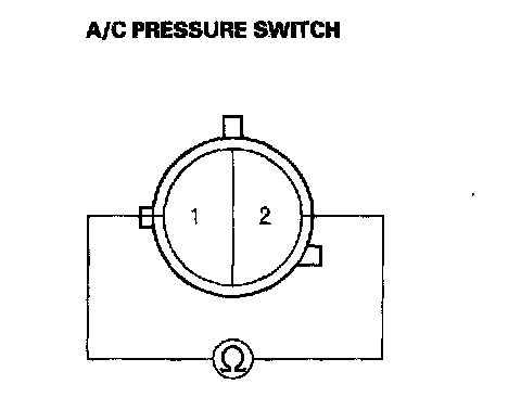 11. Check for continuity between the No.1 and No.2 terminals of the A/C pressure switch.