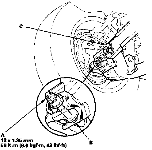 NOTICE: Do not loosen the special bolts (C) on the lower arm to adjust the alignment.