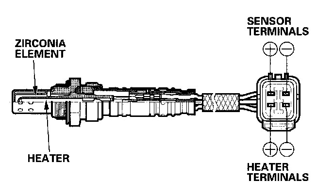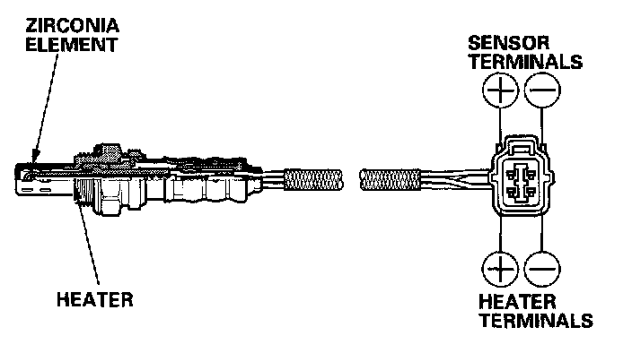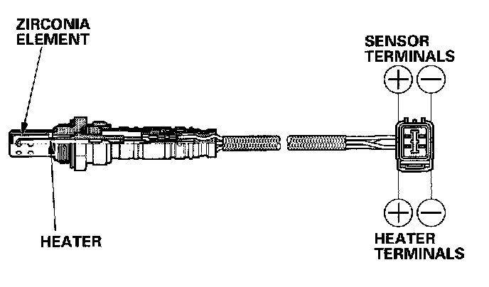 The secondary HO2S detects the oxygen content in the exhaust gas downstream of the three way catalytic converter (TWC) and sends signals to the ECM which varies the duration of fuel injection accordingly. To stabilize its output, the sensor has an internal heater. The ECM compares the HO2S output with the A/F sensor output to determine catalyst efficiency. The secondary HO2S is installed in the TWC.
