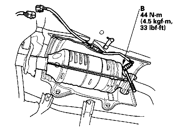 1. Disconnect the third HO2S 4P connector (A), then remove the third HO2S (B).