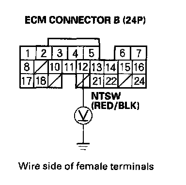 5. Measure voltage between ECM connector terminal B12 and body ground.