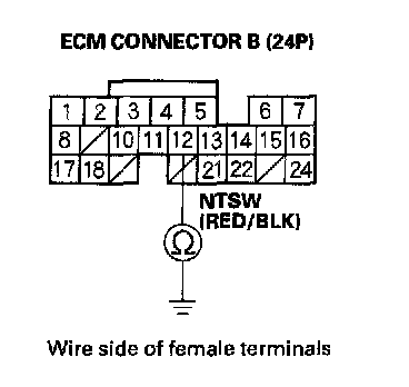 13. Check for continuity between ECM connector terminal B12 and body ground.