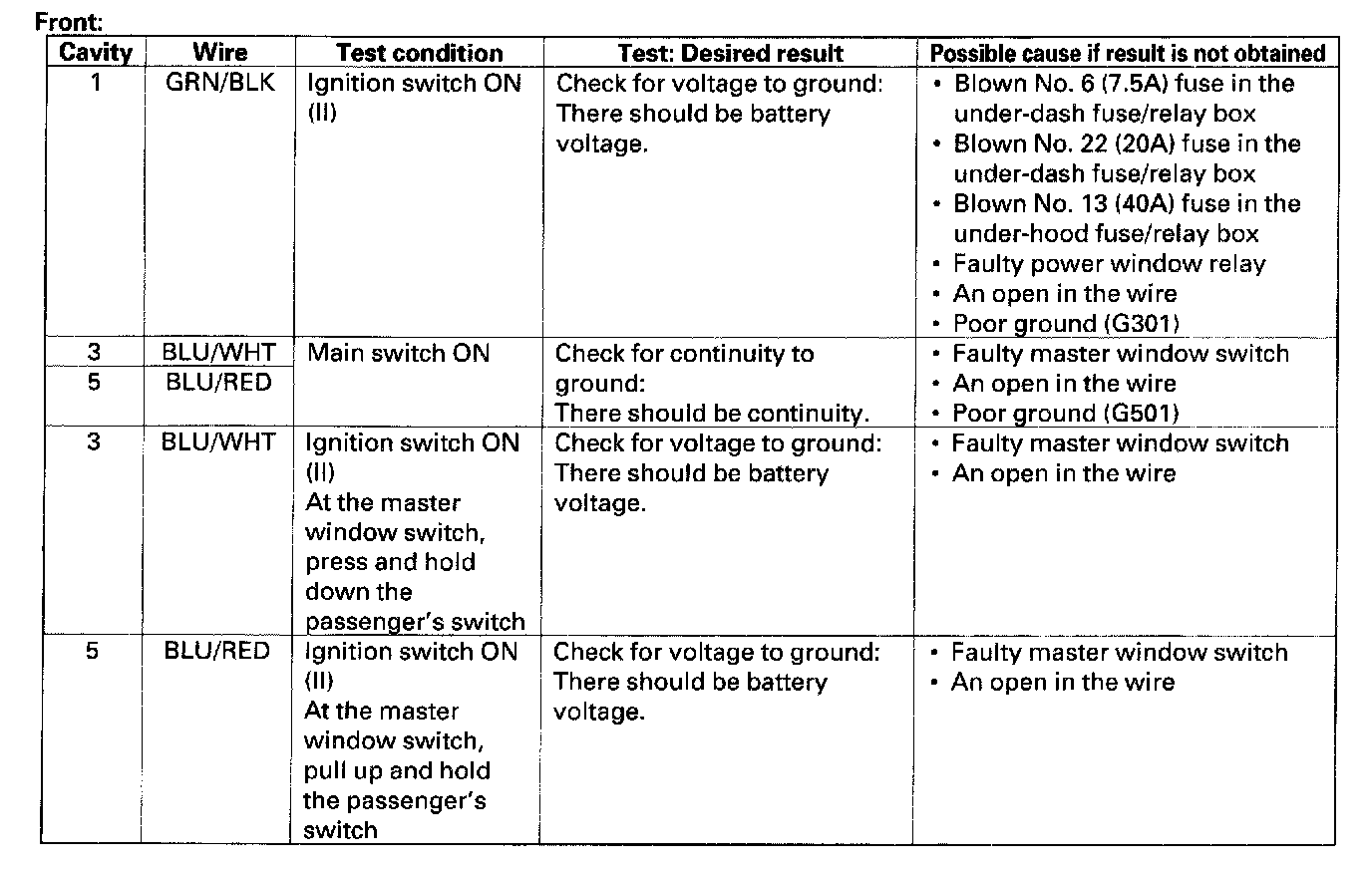 4. Reconnect the connector, and make these input tests at the connector. If any test indicates a problem, find and correct the cause, then recheck the system.