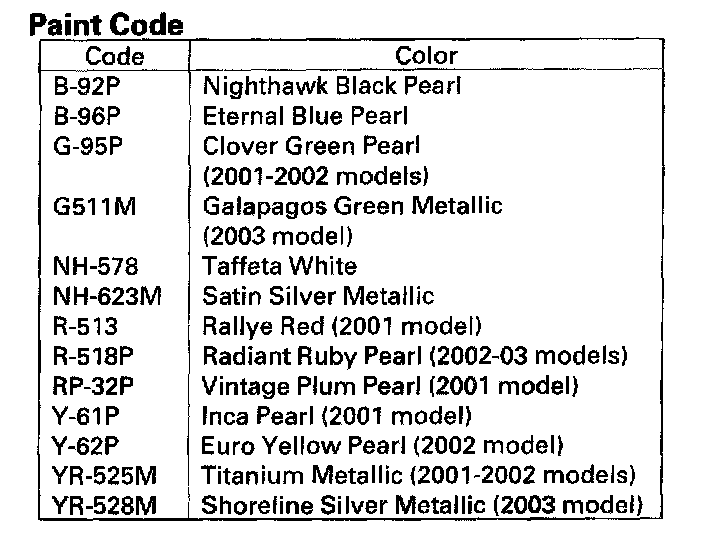 Paint Code - Canadian Model 4-door: