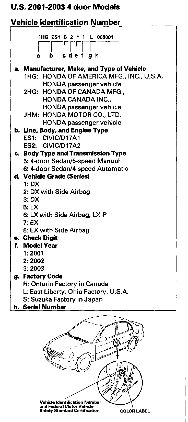 Vehicle Identification Number - U.S Model 4-door: