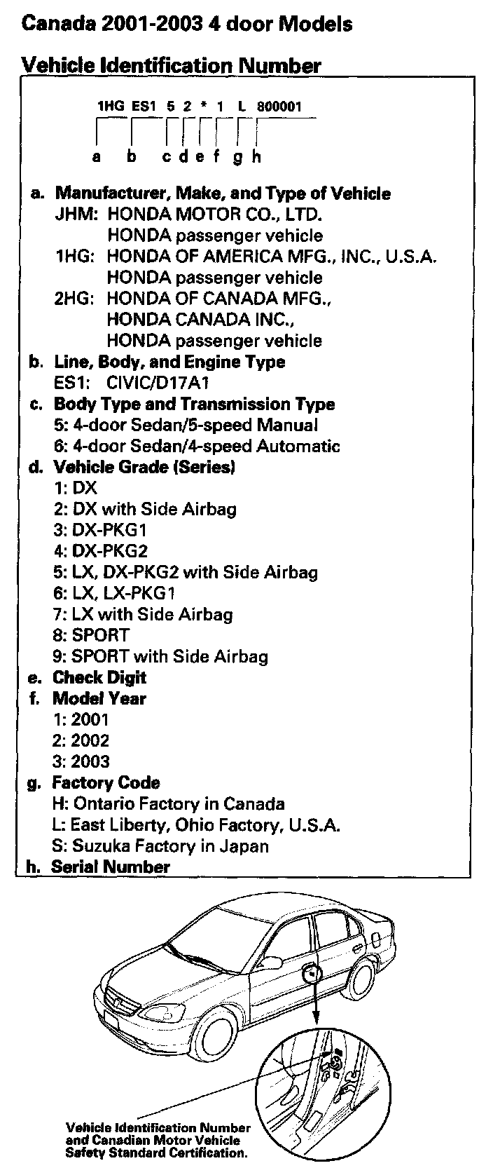 Vehicle Identification Number - Canada Model 4-door: