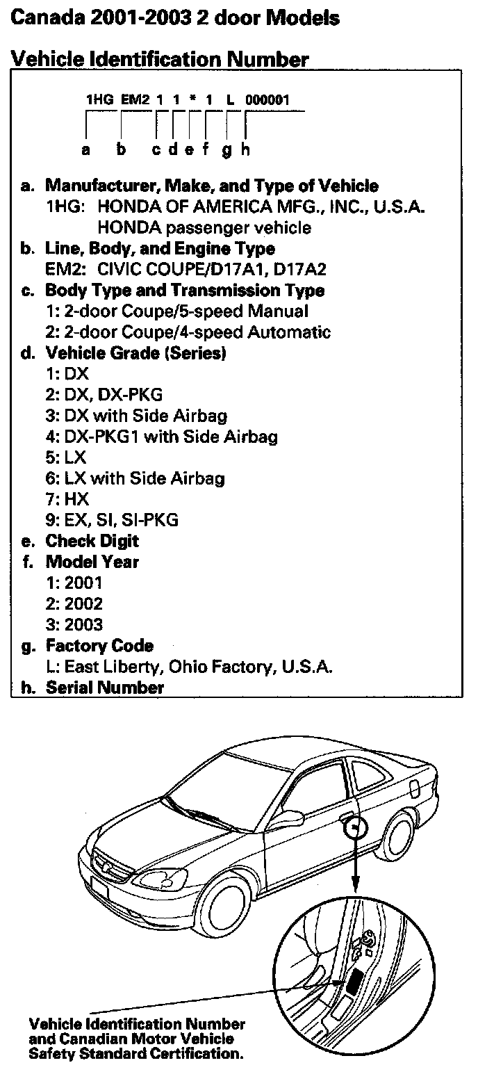 Vehicle Identification Number - Canada Model 2-door: