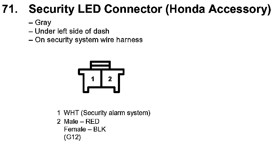 71. Security LED Connector (Honda Accessory):