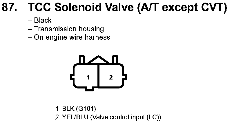 87. TCC Solenoid Valve (A/T Except CVT):