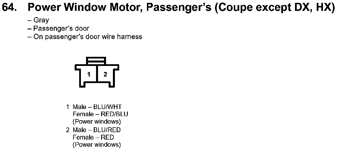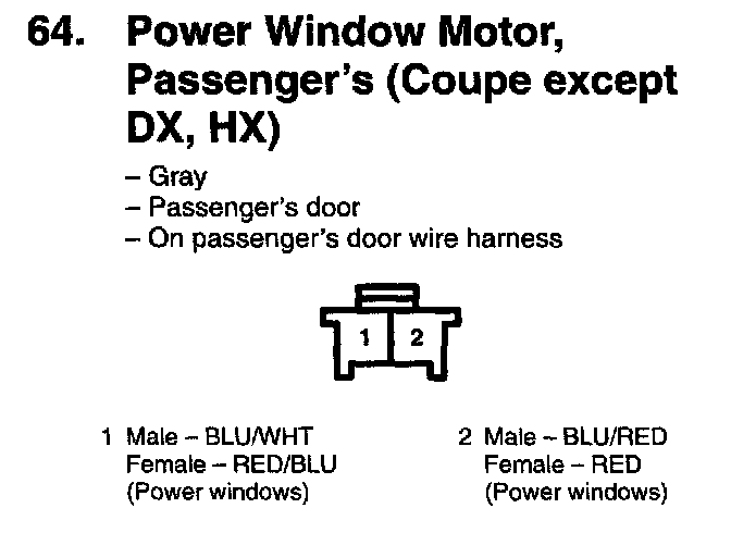 64. Power Window Motor, Passenger's (Coupe Except DX, HX):