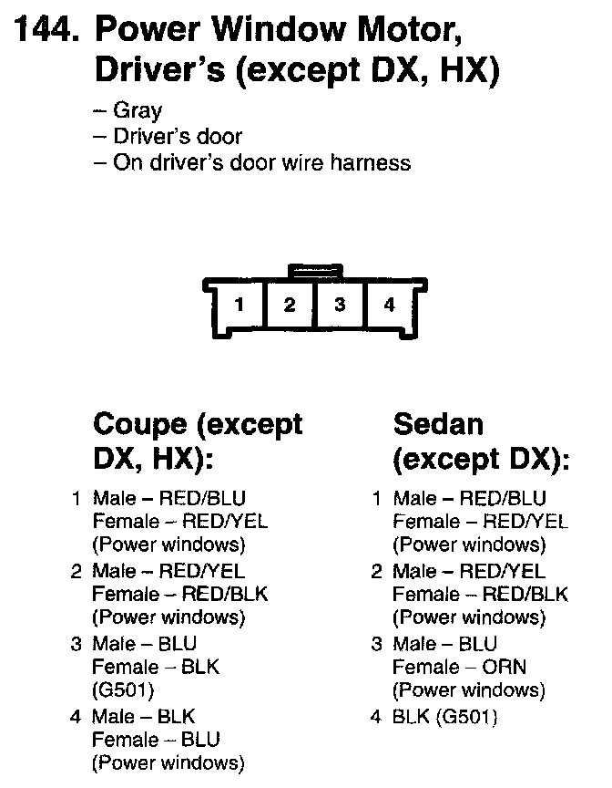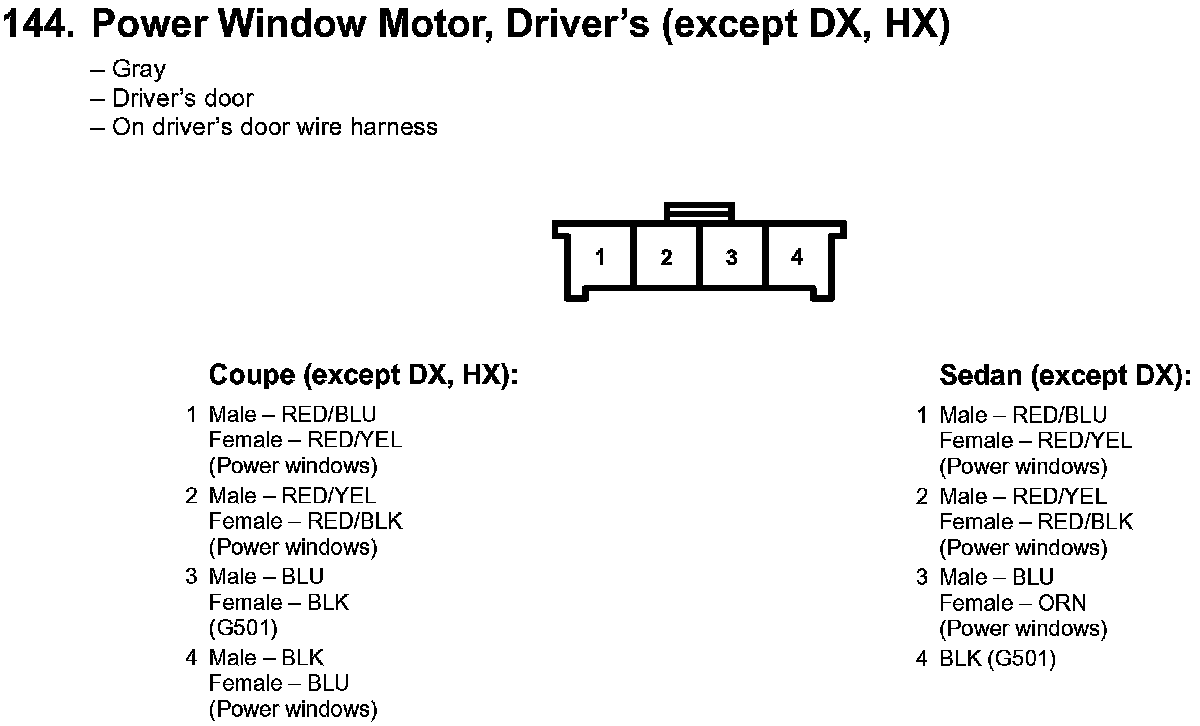 144. Power Window Motor, Driver's (except DX, HX):