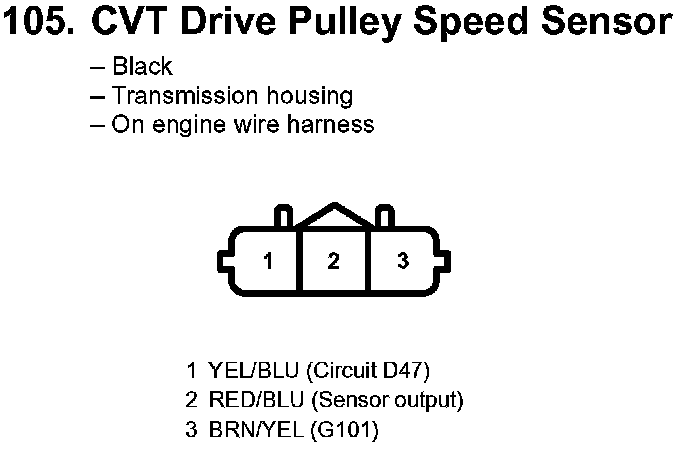 105. CVT Drive Pulley Speed Sensor: