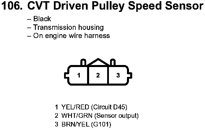106. CVT Driven Pulley Speed Sensor: