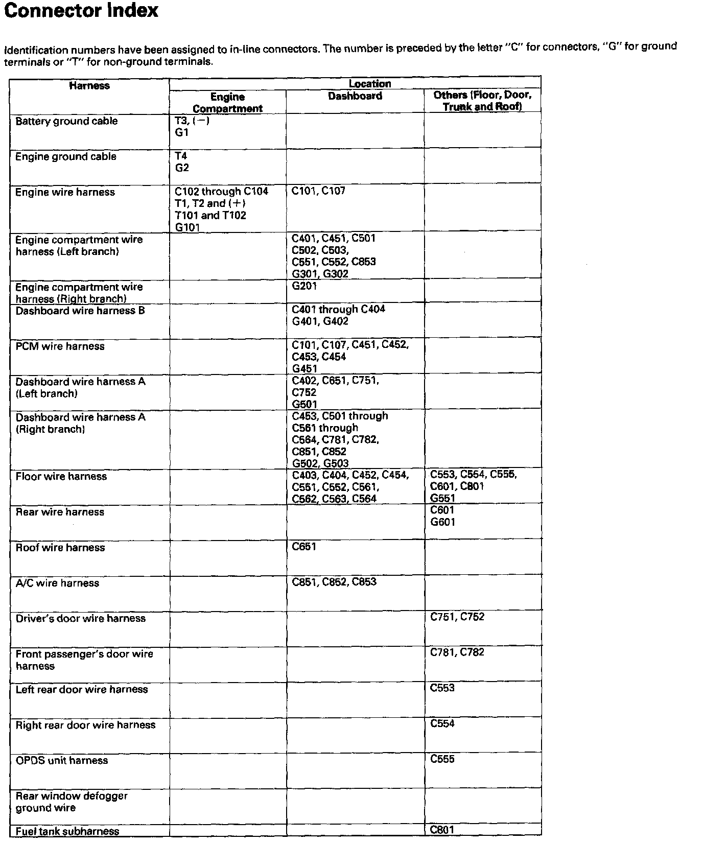 Connectors And Harnesses - Connector Index: