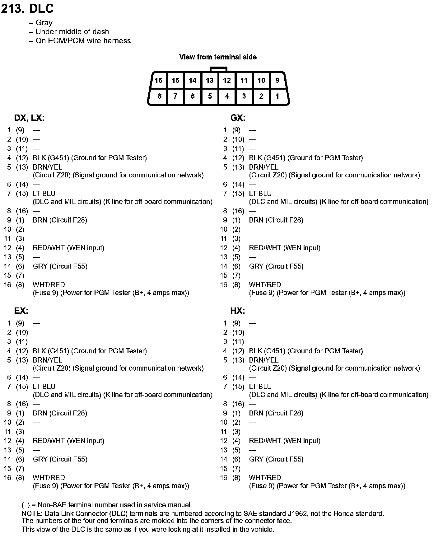 Data Link Connector: Diagrams