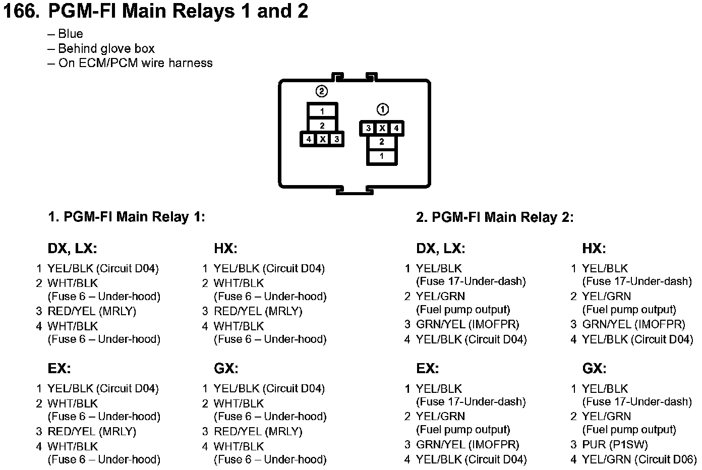 166. PGM-FI Main Relays 1 And 2: