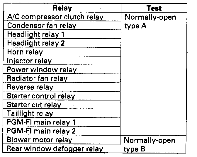 Power Relay TestUse this chart to identify the type of relay, then do the test listed for it.