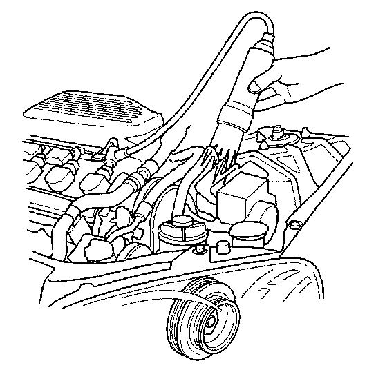 2. Start the engine. Hold the engine at 3,000 rpm with no load in [N] or [P] (A/T, CVT) or neutral (M/T) until the radiator fan comes on, then let it idle.