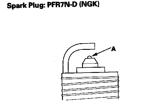 2. Do not adjust the gap of platinum tip plugs (A); replace the spark plug if the gap is out of specification.