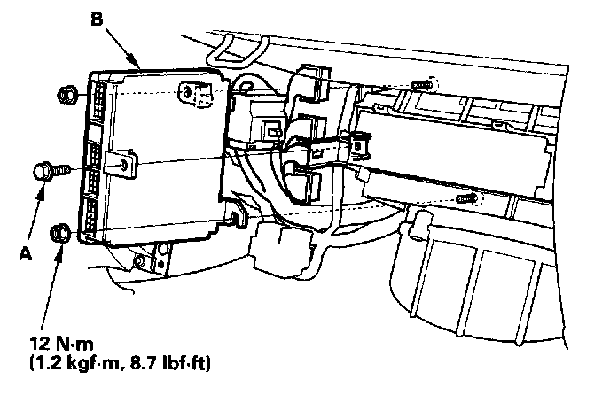 5. Remove the nuts, then remove the PCM (B).