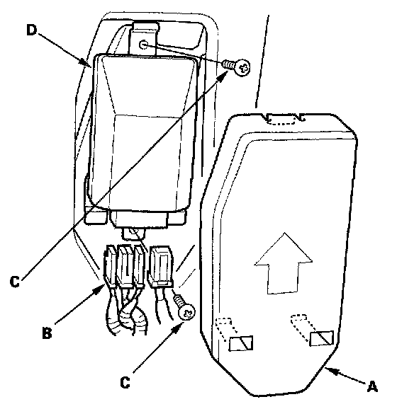 1. Place the new OPDS unit on the seat-back frame. Tighten the two screws, and connect the OPDS unit harness 8P and sensor connector to the OPDS unit. Reinstall the cover.