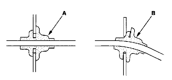 - Check for loose retainer (A) and rubber seals (B).