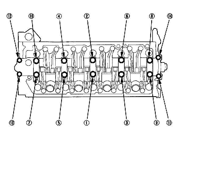 Tighten each bolt two turns at a time, in the sequence shown below, to ensure that the rockers do not bind on the valves.