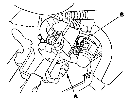 3. Make sure with the shift lever is in neutral position, then disconnect the BLK/YEL wire (A) from the starter solenoid (B), then connect a jumper wire from the battery positive terminal to the solenoid terminal.