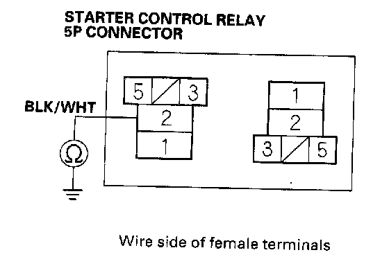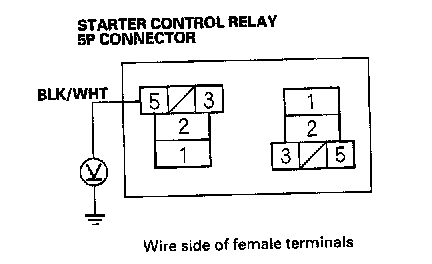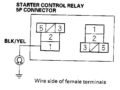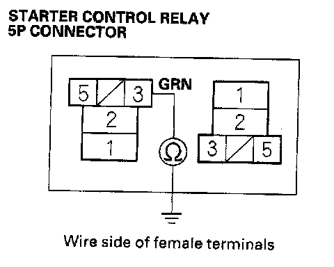 18. Check for continuity between starter control relay 5P connector terminal No. 1 and the starter.