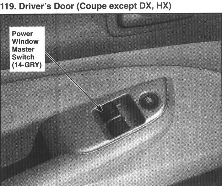 119. Driver's Door (Coupe except DX, HX):