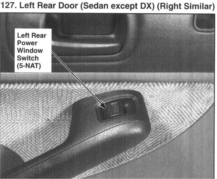 127. Left Rear Door (Sedan except DX) (Right Similar):