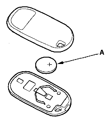 3. Replace the transmitter battery (A) with a new one, and try to lock and unlock the doors with the transmitter by pressing the lock or unlock button five or six times.