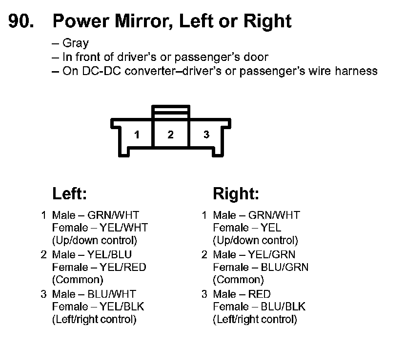 90. Power Mirror, Left Or Right: