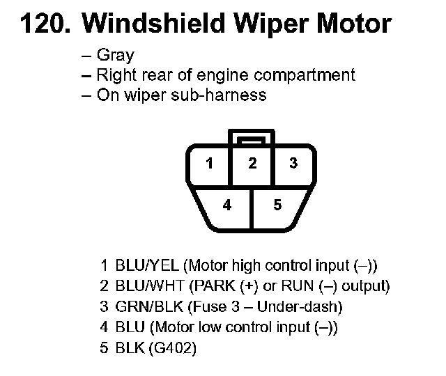 120. Windshield Wiper Motor: