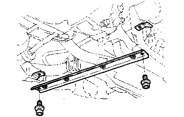 43. Remove the transmission mount bracket mounting nuts and mounting bolt.