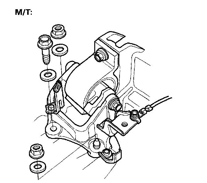 24. Install the shift cables, manual transmission (M/T), continuously variable transmission (CVT).