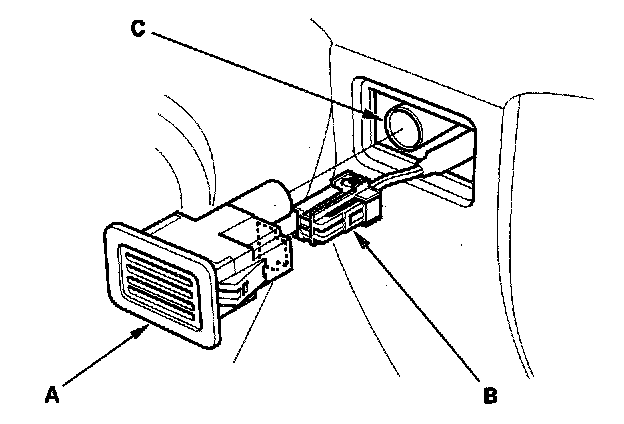 In-car Temperature Sensor Replacement1. Remove the in-car temperature sensor (A) from the dashboard, then disconnect the 2P connector (B) and the air hose (C). Be careful not to damage the sensor or the dashboard.