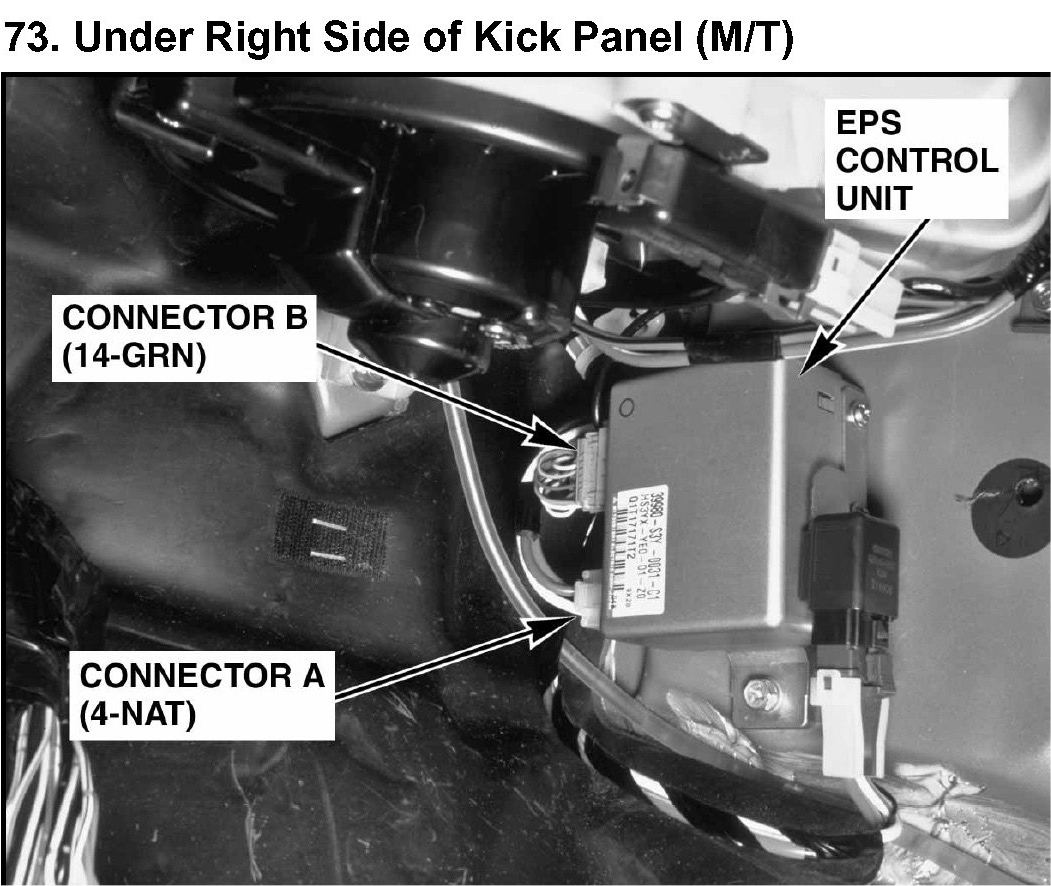 73. Under Right Side of Kick Panel (M/T):