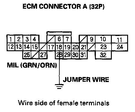 12. Connect ECM connector terminal A18 to body ground with a jumper wire.