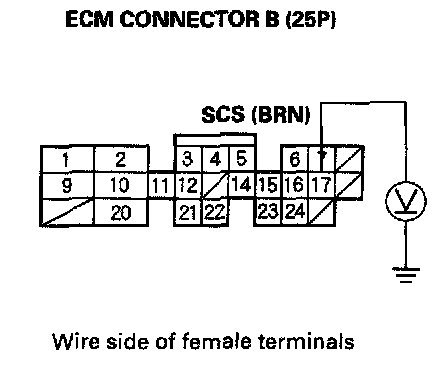 61. Measure voltage between ECM connector terminal B17 and body ground.