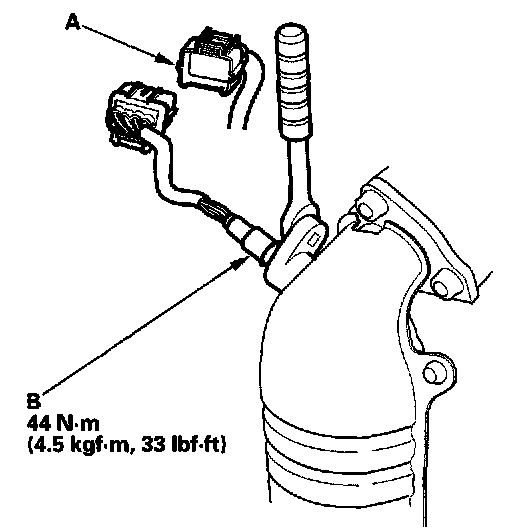 Disconnect the A/F sensor 4P or 8P connector (A), and remove the A/F sensor (B).