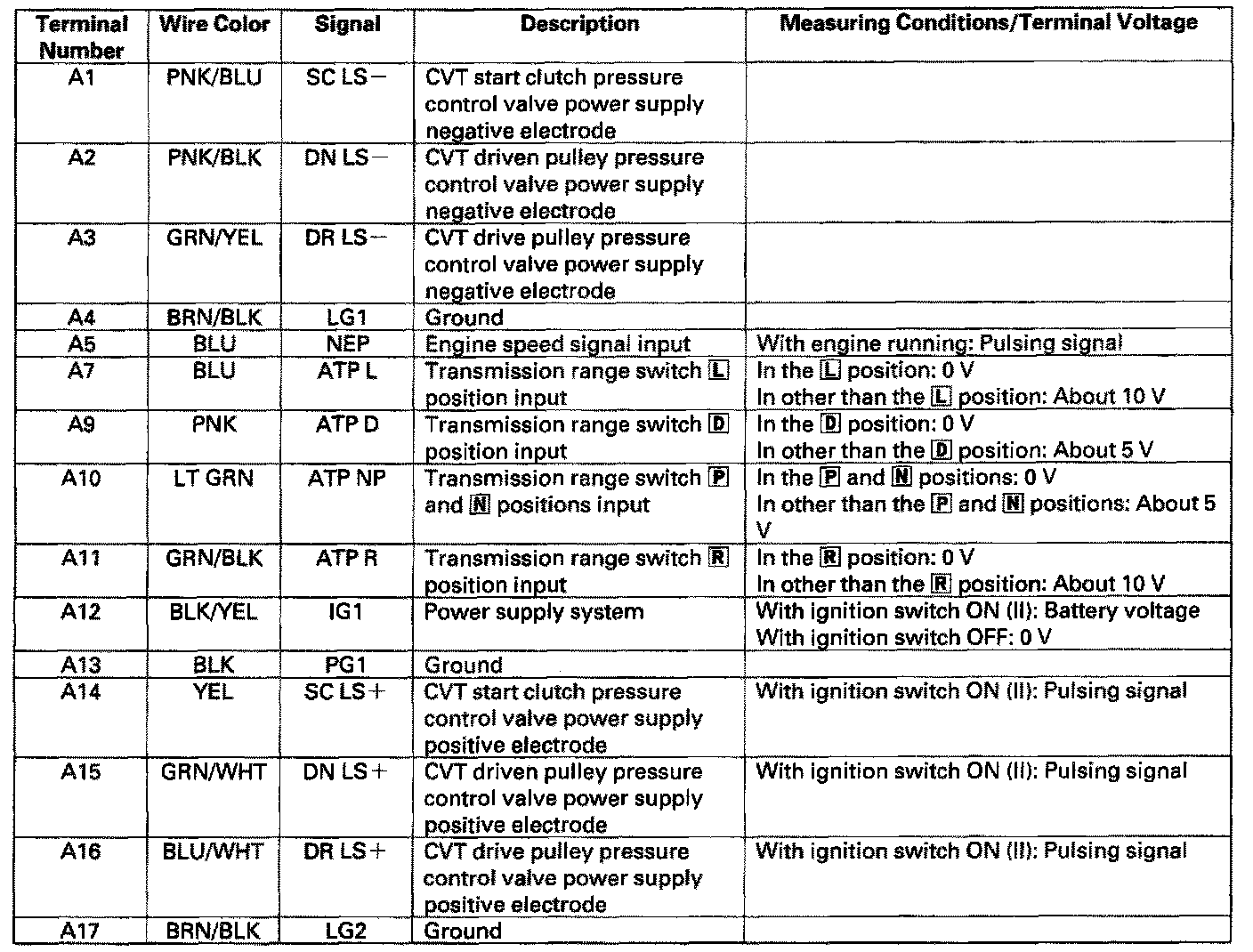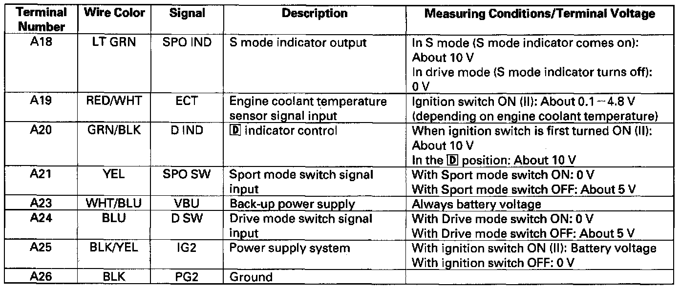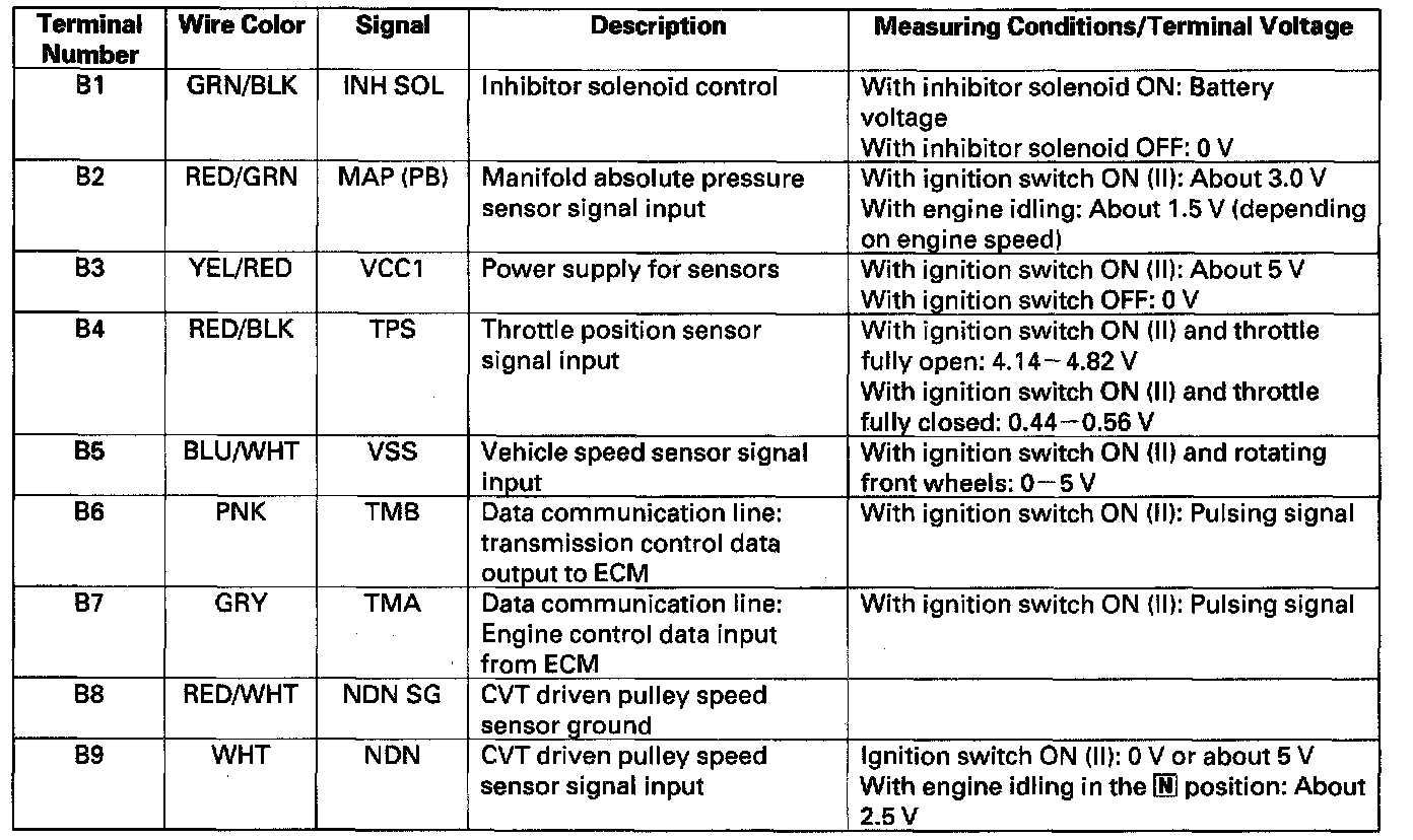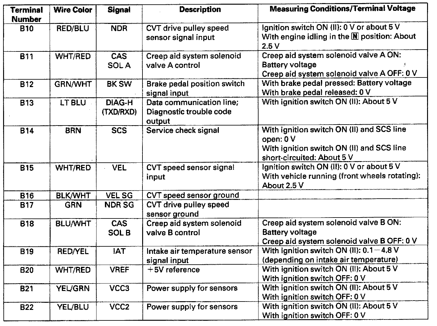 Pinout Values and Diagnostic Parameters