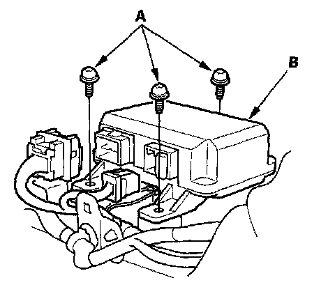 5. Remove the three Torx bolts (A) from the SRS unit (B), then pull out the SRS unit.