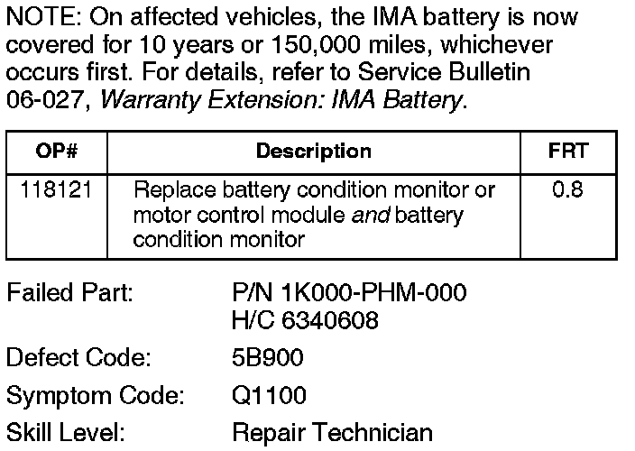 Product Update: Premature IMA Battery Module Failure
