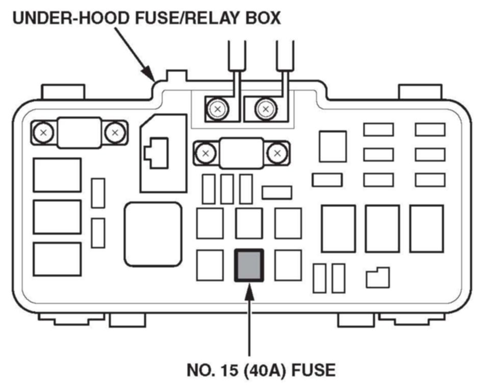 20. Remove the No. 15 (40A) fuse (EPS control unit) from the under-hood fuse/relay box.