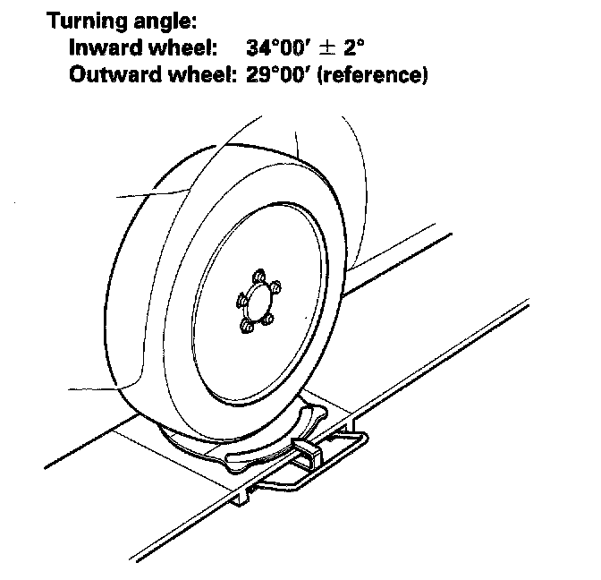 2. If the turning angles are out of specification or the inward turning angles differ between the right and left, check the toe, and adjust accordingly.