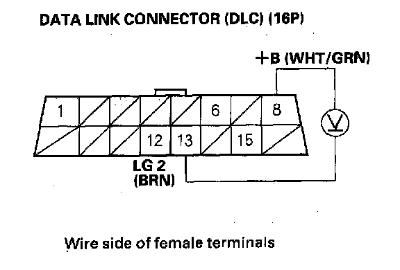 1. Measure voltage between DLC terminal No.8 and body ground.