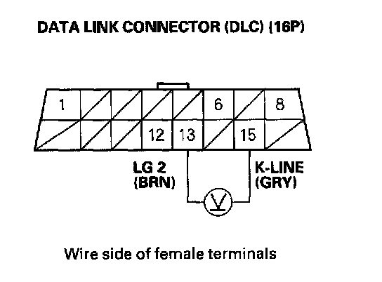 13. Measure voltage between DLC terminals No.13 and No.15.